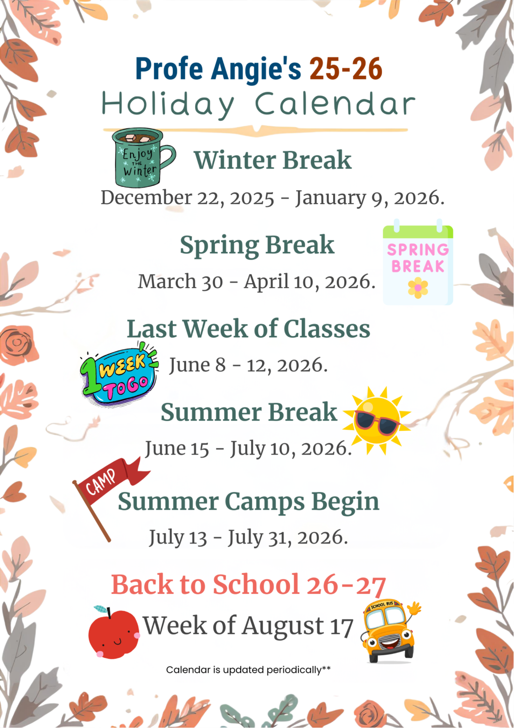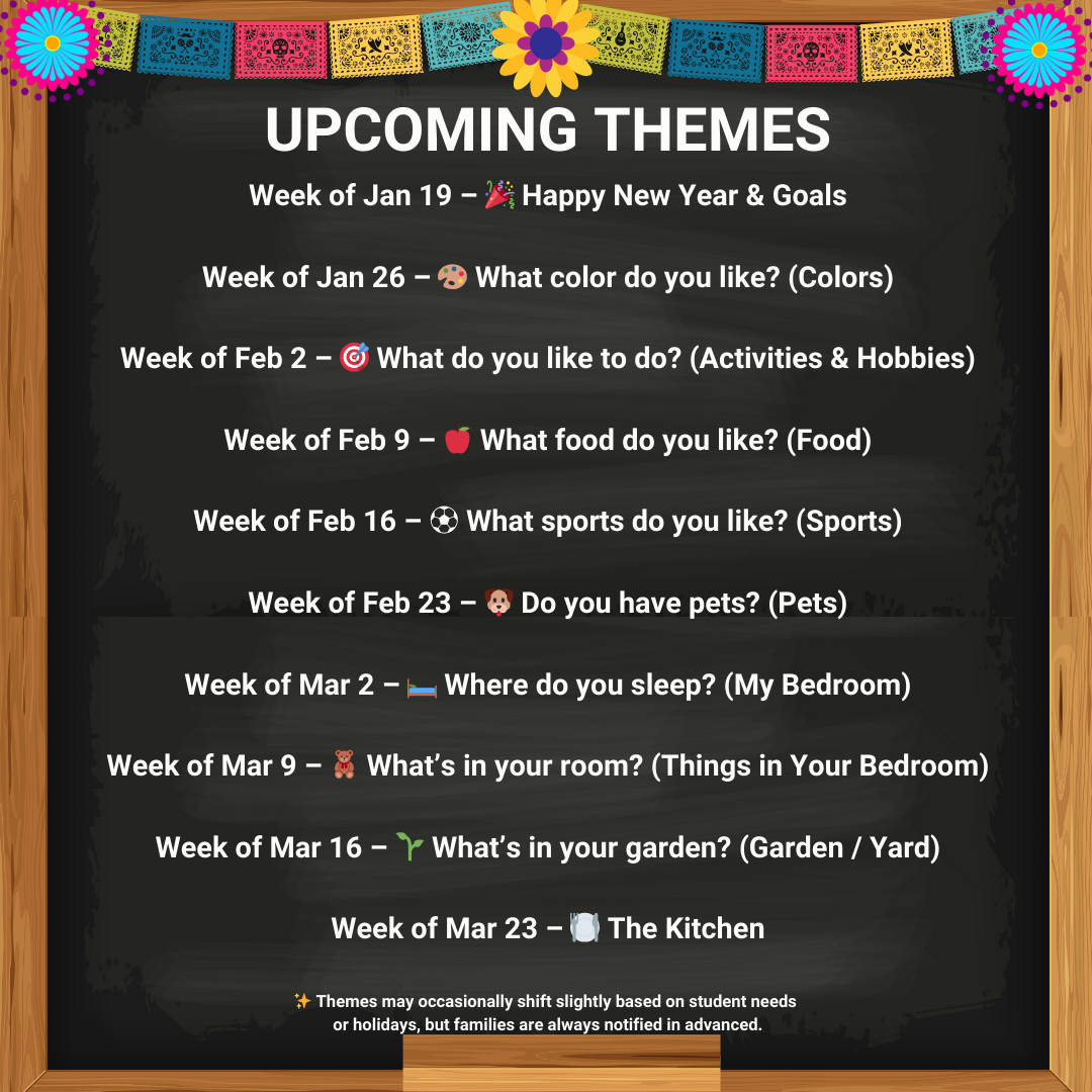 Each class begins with familiar Spanish routines, including greetings, feelings, the calendar, and weather. These repeated elements help learners feel safe, focused, and ready to participate while naturally building comprehension.